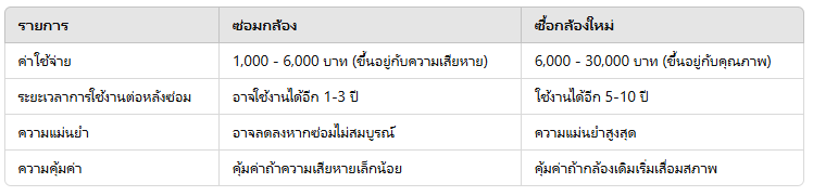 หากต้องการความแม่นยำสูง และกล้องได้รับความเสียหายมาก แนะนำให้ซื้อใหม่ เพื่อป้องกันข้อผิดพลาดในการวัดและเพิ่มประสิทธิภาพในการทำงาน