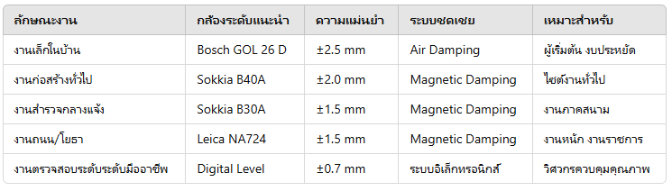 แนวทางการเลือกกล้องระดับ (Auto Level) ตามลักษณะงาน