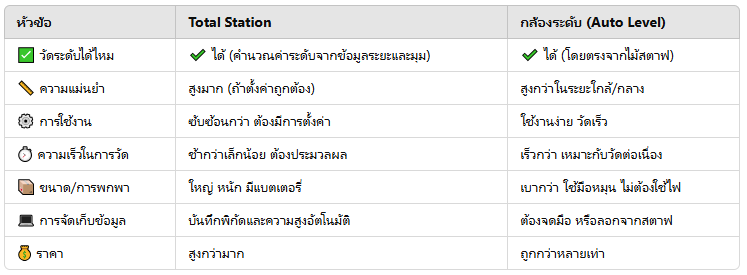 ข้อเปรียบเทียบ: Total Station vs กล้องระดับ