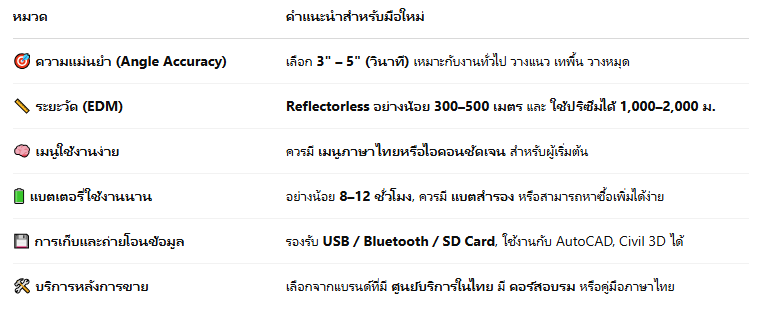 มือใหม่ควรเลือกกล้อง Total Station ที่