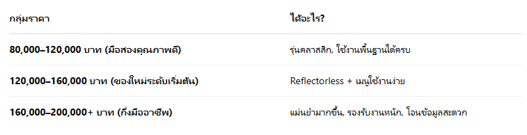 งบประมาณทั้งหมด (รวมแบต, ขาตั้ง, ปริซึม, อุปกรณ์เสริม)