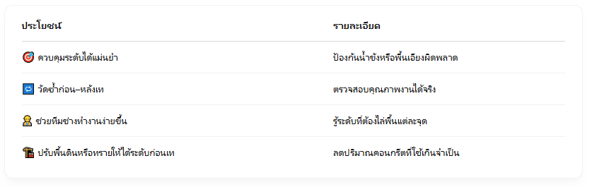 กล้องระดับ = เครื่องมือควบคุมความเรียบและความลาดของ “พื้น” ได้แม่นยำที่สุด