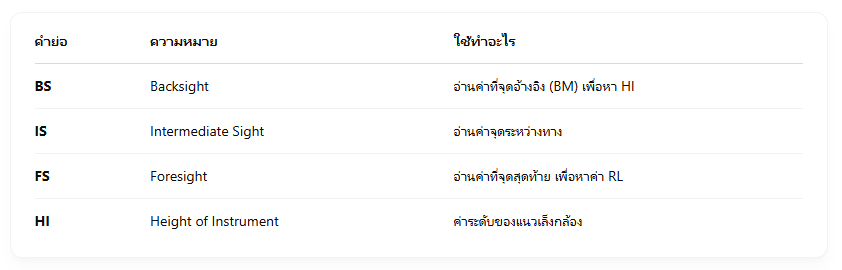 ความรู้พื้นฐานที่ควรทราบ การคำนวณค่าระดับ จากกล้องระดับ