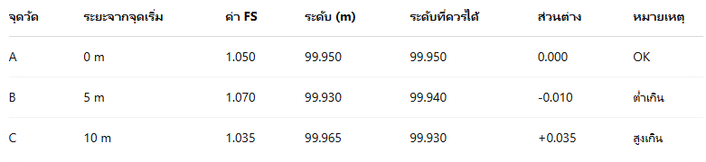 ใช้ HI ที่คำนวณจาก BM → อ่านค่า FS แต่ละจุด