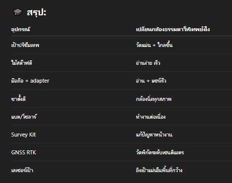 เป้ามาตรฐานบางรุ่นเบี่ยงเบนแสง → ค่าเบี้ยว เป้าเทพ = เคลือบพิเศษ สะท้อนแม่นกว่า ใช้กับ Total Station ได้ระยะไกลขึ้น