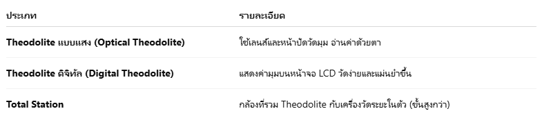 กล้องวัดมุมเป็นเครื่องมือสำคัญในงานสำรวจภาคสนาม ช่วยให้สามารถวัดมุมได้อย่างแม่นยำ ใช้งานง่าย มีทั้งรุ่นแสงและดิจิทัล เหมาะกับงานวางแนวอาคาร ถนน ระบบท่อ และอื่น ๆ