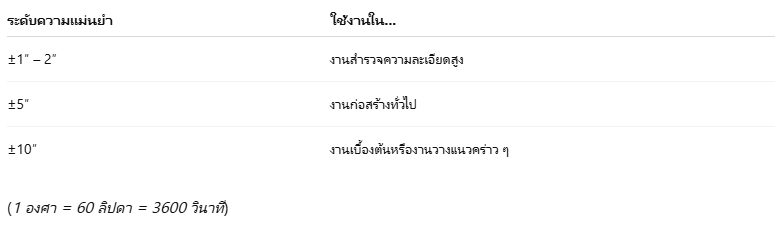 - เล็งไปยังจุดเป้าหมาย แล้วอ่านค่ามุมราบและมุมดิ่ง