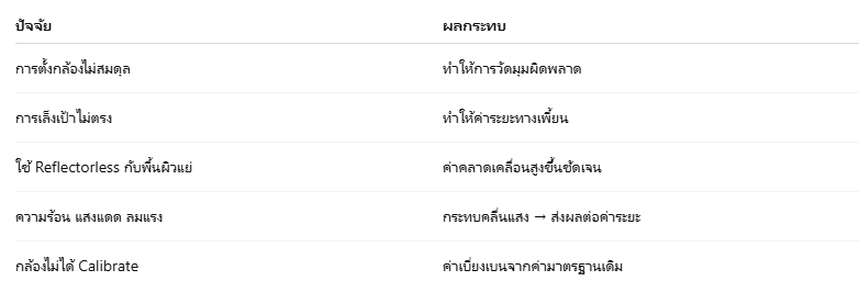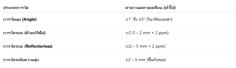 ค่าความคลาดเคลื่อนโดยทั่วไปของกล้อง Total Station