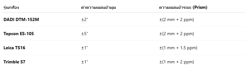 กล้อง Total Station มีค่าคลาดเคลื่อนในระดับ มิลลิเมตรถึงวินาทีขององศา