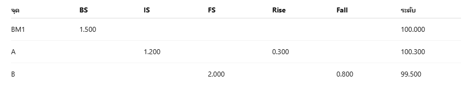 3. ค่าระดับใหม่ = ค่าระดับเดิม + Rise หรือ - Fall