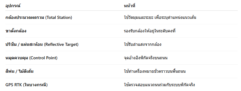 อุปกรณ์ที่ใช้ในงานตีเส้นถนนด้วยกล้องสำรวจ
