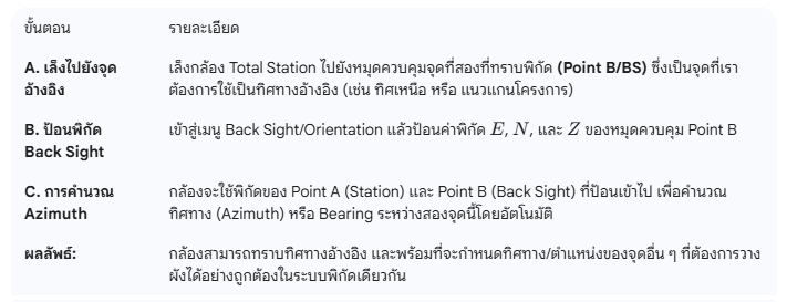 2. การตั้งค่า Back Sight (การกำหนดทิศทางอ้างอิง)